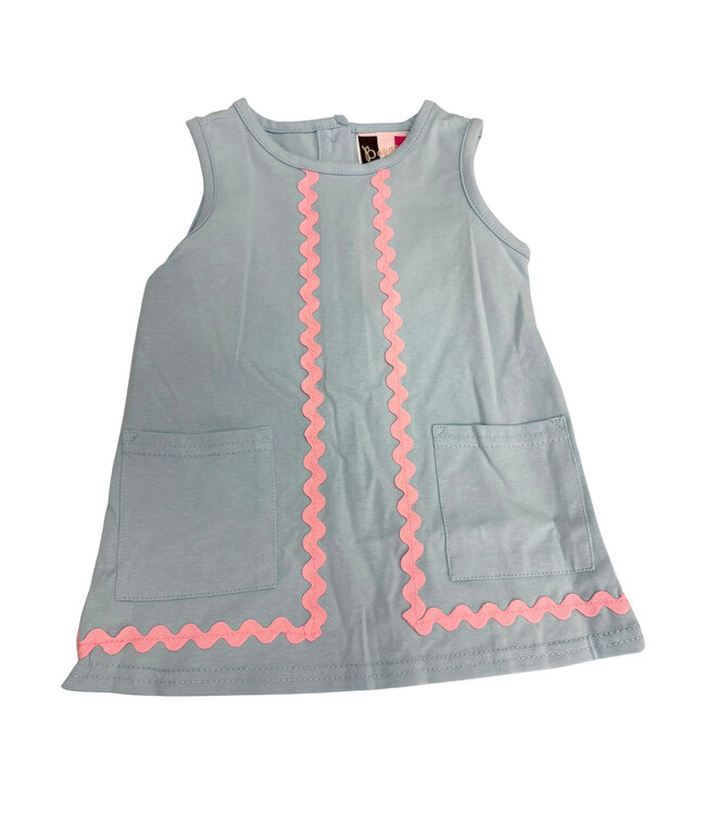 Simply sweet and oh-so chic, the Blair Blue A-Line Dress by Banana Split is a classic with a playful twist. This darling blue A-line girls dress features a timeless silhouette accented by a cheerful strip of pink ric rac trim down the center for a pop of color and charm. Designed with two front pockets, this ric rac dress for girls blends classic boutique style with fun, functional detail. Lightweight, comfortable, and polished, it’s a standout classic girls dress full of personality.