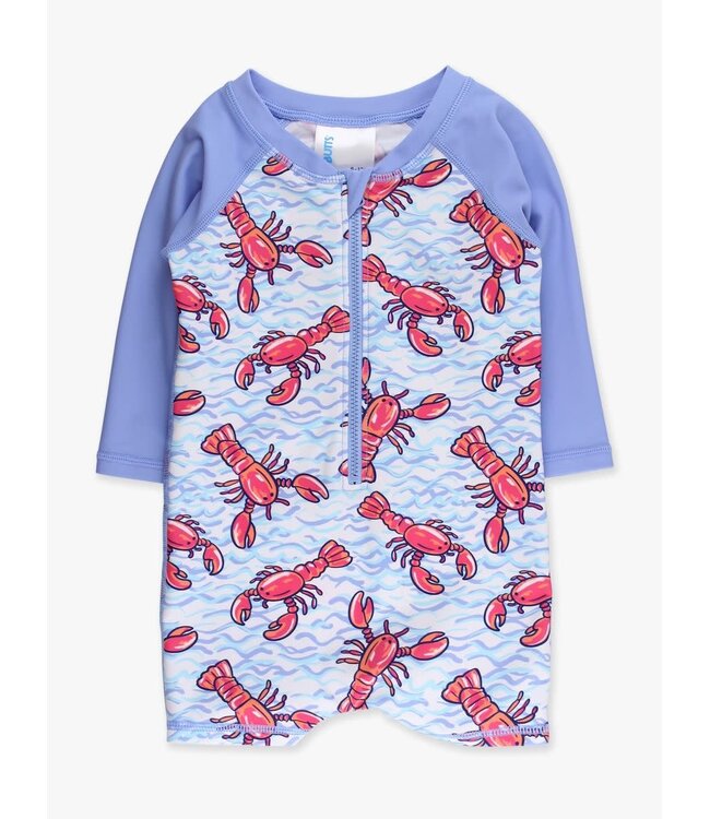Blue Lobster Lagoon Long Sleeve One-Piece Rash Guard by RuggedButts – Boys (0/3M–2T)