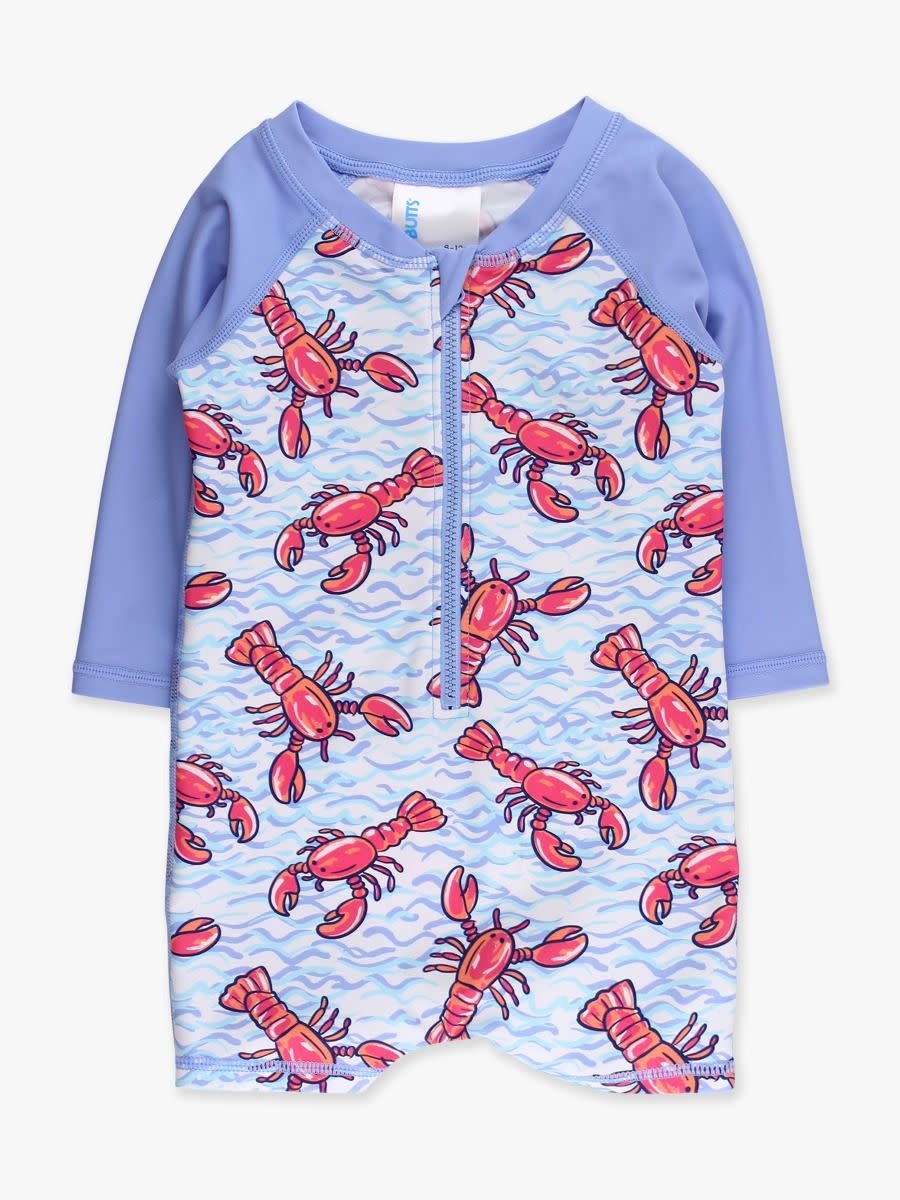 • Blue Lobster Lagoon Long Sleeve One-Piece Rash Guard by RuggedButts – Boys (0/3M–2T)