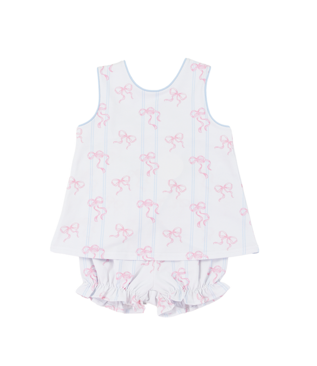 This set is simply bow-tiful! The Bowtiful Cassidy Crossover Set by Cypress Row is the perfect mix of sweet and stylish. Featuring a classic blue stripe pattern sprinkled with adorable pink bows, this two-piece set is full of charm. The top is finished with a trendy crossover back, adding a playful twist, while the matching bottom completes the look effortlessly.