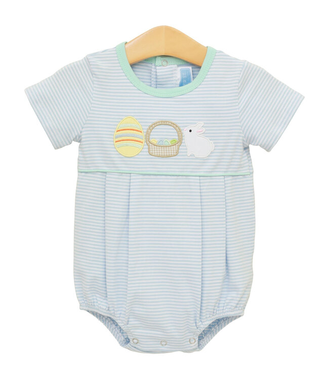 Hop into spring in the sweetest way with the Bunnies & Baskets Blue Bubble! This darling blue and white striped bubble features cute bunny, Easter egg, and basket appliqués, making it egg-stra special for Easter celebrations. Perfect for first Easters, egg hunts, and sunny spring days, this bubble is made for crawling, toddling, and all the hop-tastic fun.
