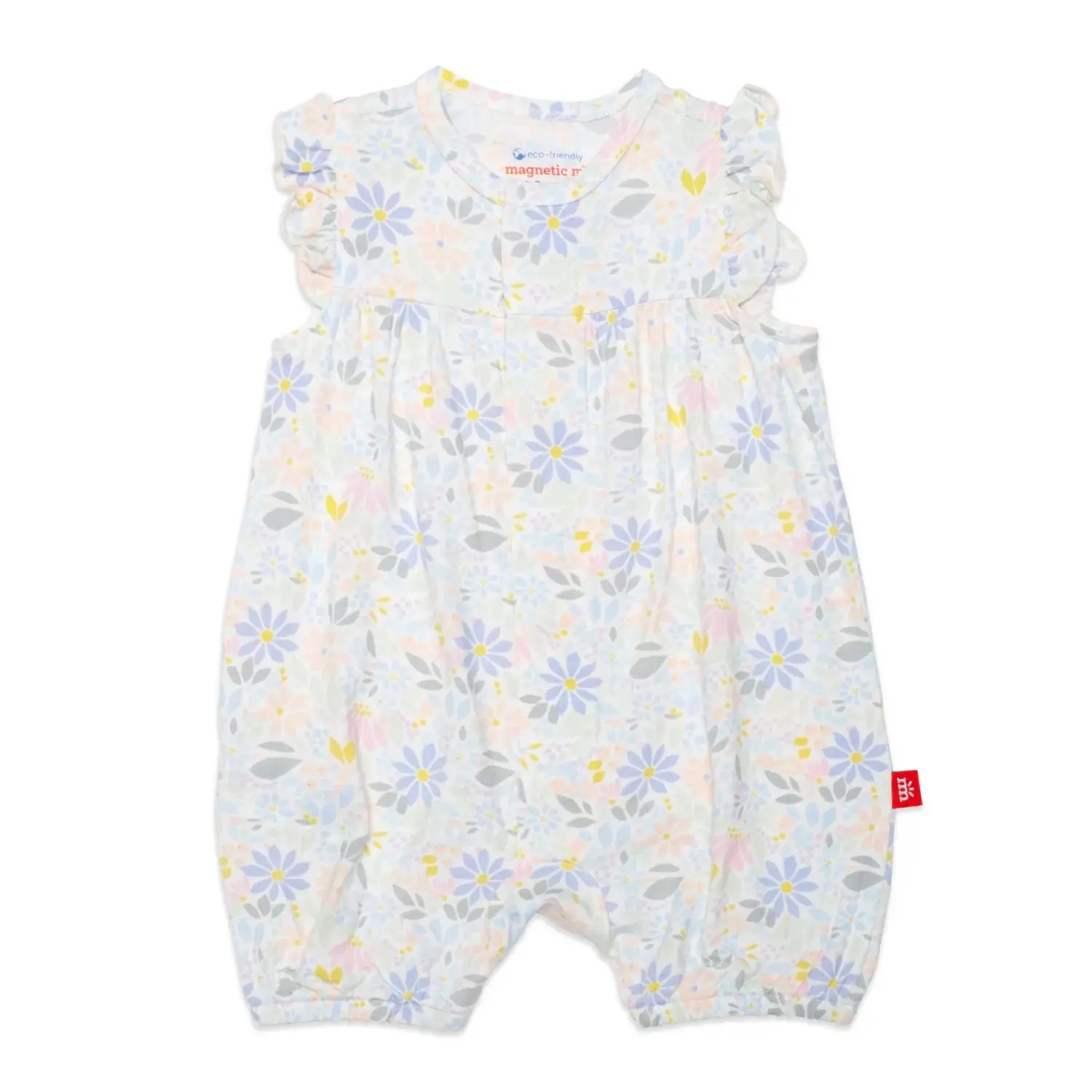 • Dress your little one in the cutest floral romper for spring and summer! The breathable fabric is perfect for playing outside on a warm day! Parents love the easy to fasten magnetic closures from Magnetic Me.