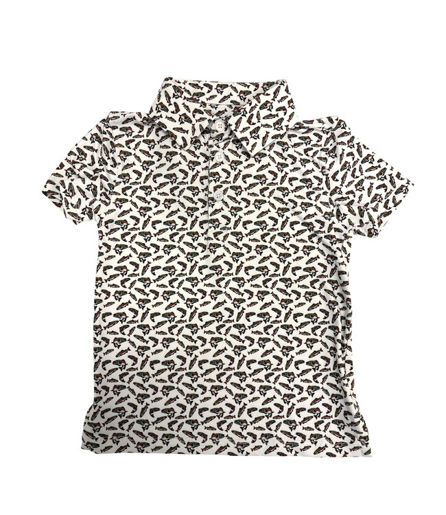 Sporty meets playful in the Rainbow Trout Polo by Meripex, a go-to choice for boys on the move. This classic polo shirt is made from lightweight performance fabric designed for all-day comfort, making it perfect for school, outings, or active days. Featuring an allover rainbow trout pattern, it adds a fun, outdoorsy touch while still keeping a polished look.