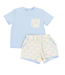 Playful and polished, the Seas the Day Beckham Play Set by Cypress Row is perfect for sunny days and seaside adventures. This charming two-piece set features a light blue shirt with a patterned pocket, paired with matching shorts for a coordinated look. The cheerful pattern showcases pastel sailboats on a pale yellow background, adding a fun nautical touch.