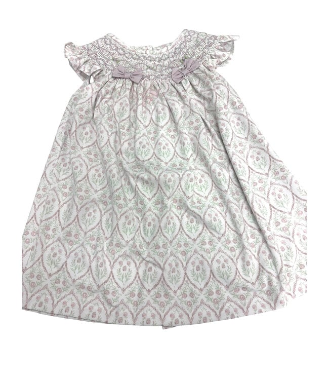 Blooming with charm and sweetness, the Spring Meadow Smocked Bishop by Banana Split is a garden of darling details. This beautiful smocked bishop dress for girls features delicate smocking across the neckline with angel sleeves for a soft, classic silhouette. Just beneath the smocking sit tiny lilac bows, perfectly complementing the lovely lilac floral print with soft green accents throughout. With its timeless design and boutique elegance, this floral bishop dress blends traditional style with fresh springtime charm.